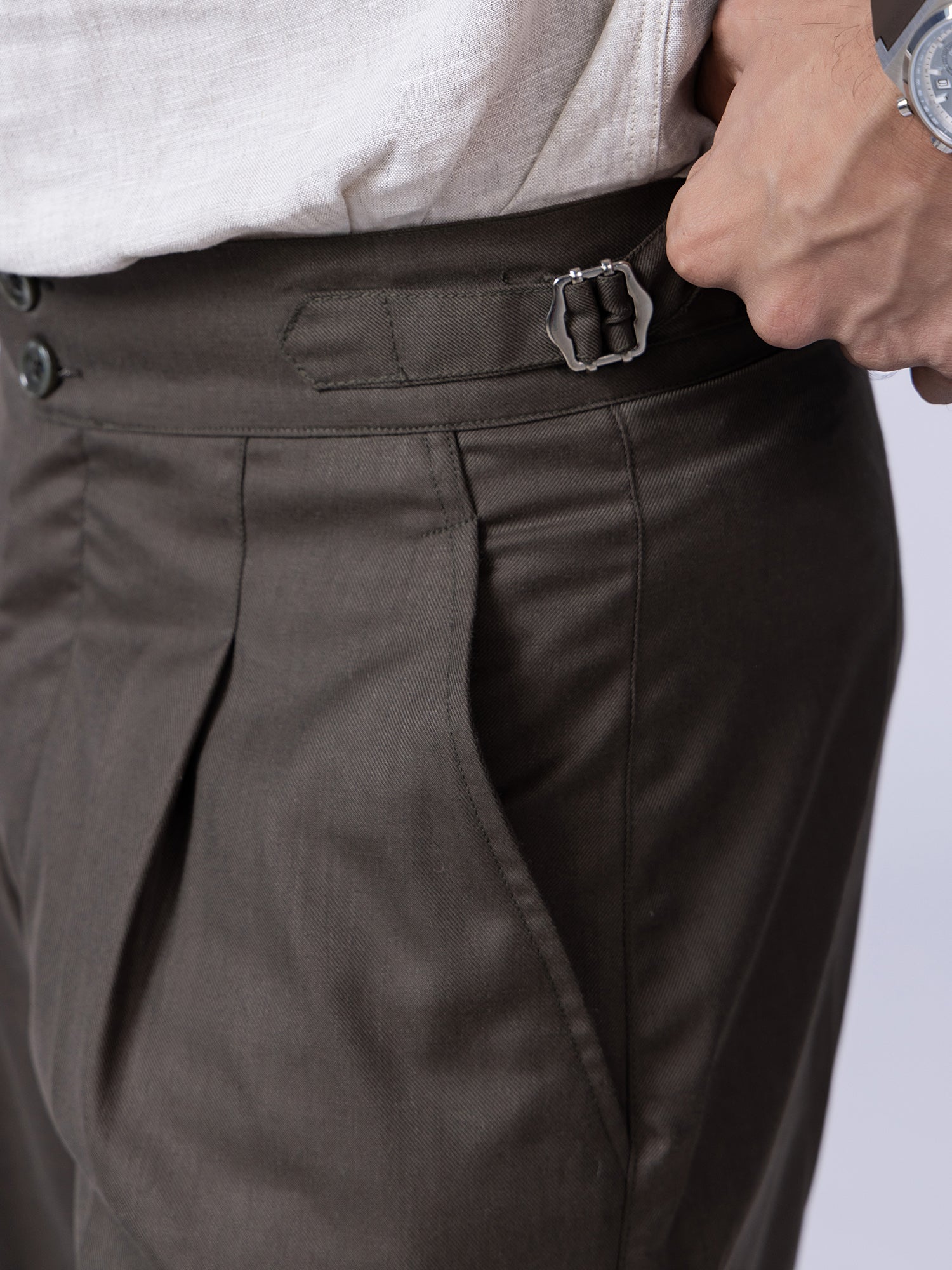 Made from premium cotton fabric, it offers excellent breathability, a smooth finish, and lasting comfort. The high-rise waistband with button detailing and clean front pleats add a refined touch, while the tapered leg ensures a polished, structured look.